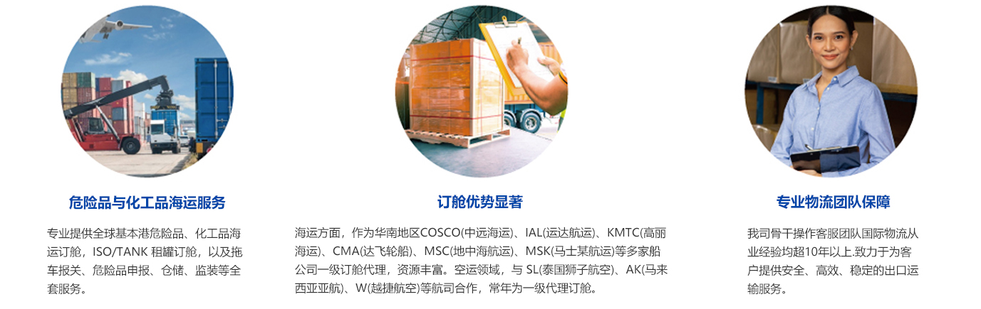 公司團(tuán)隊致力于為客戶提供出口海運、空運一站式物流服務(wù)。依據(jù)客戶的不同需求,為不同企業(yè)客戶定制專業(yè)化物流方案,提供空海運訂艙、報關(guān)、報檢、拖車、倉儲(裝卸貨)、危險品和特種柜訂艙等一條龍服務(wù)。