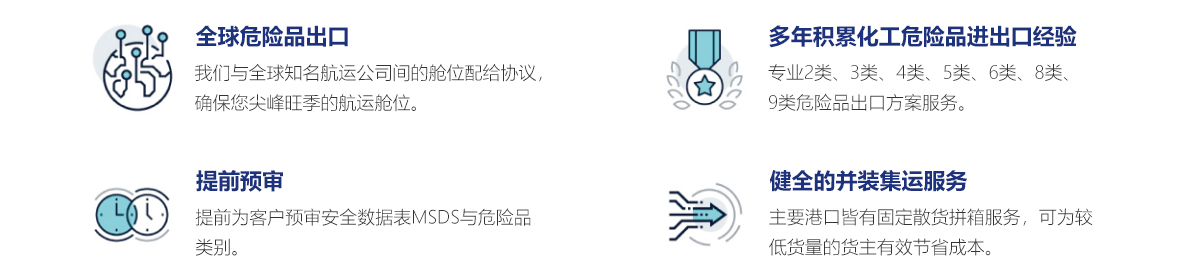 我司擁有多年化工品、危險品進(jìn)出口經(jīng)驗,深受新老客戶信任。涵蓋潤滑油、油漆、噴漆、鋰電池、鉛酸電池類、表面活性劑、粘合劑、硬化劑、AC 發(fā)泡劑、竹炭、飼料添加劑、食品添加劑等產(chǎn)品,包括液體、粉末、氣體、冷凍危險品柜等類別。我司專注于粉末、液體普通化工品及危險品進(jìn)出口運輸。提前為客戶預(yù)審安全數(shù)據(jù)表MSDS與危險品類別,以在最短時間內(nèi)用最少的成本助力客戶完成貿(mào)易。